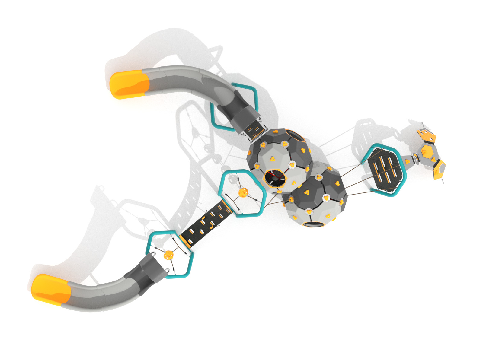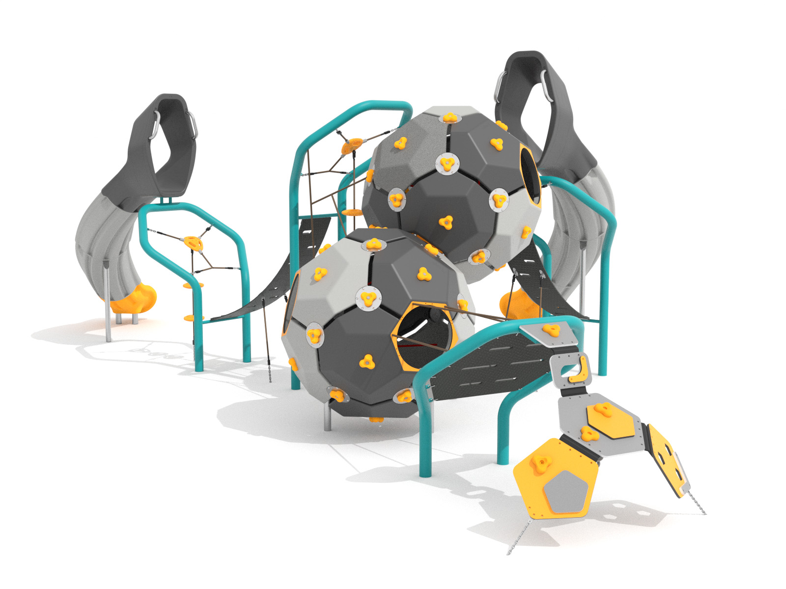 Lezecká súprava pozostávajúca z dvoch bublín, šmýkačky a lezeckých modulov.