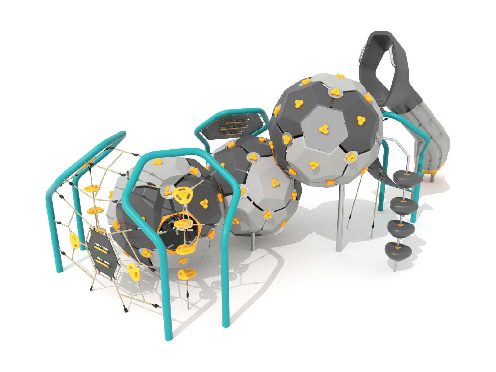 Lezecká súprava pozostávajúca z troch bublín, šmýkačky a hojdacej lezeckej steny.